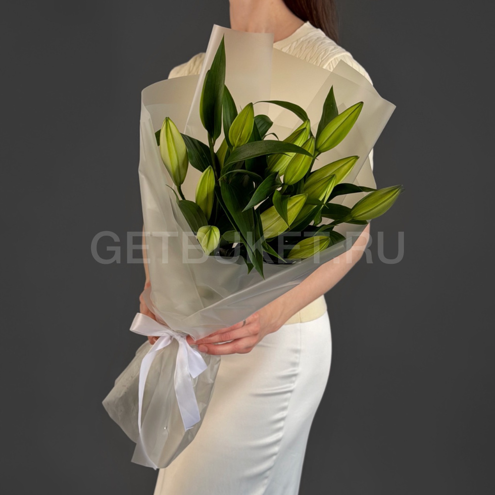 Букет из 5 лилий в упаковке
