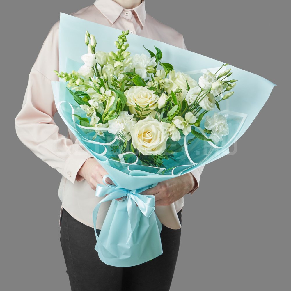 Букет из белых эустом, гербер и гвоздик с розами9 000 ₽Букет из белых эустом, гербер и гвоздик с розами 9 000 ₽ -