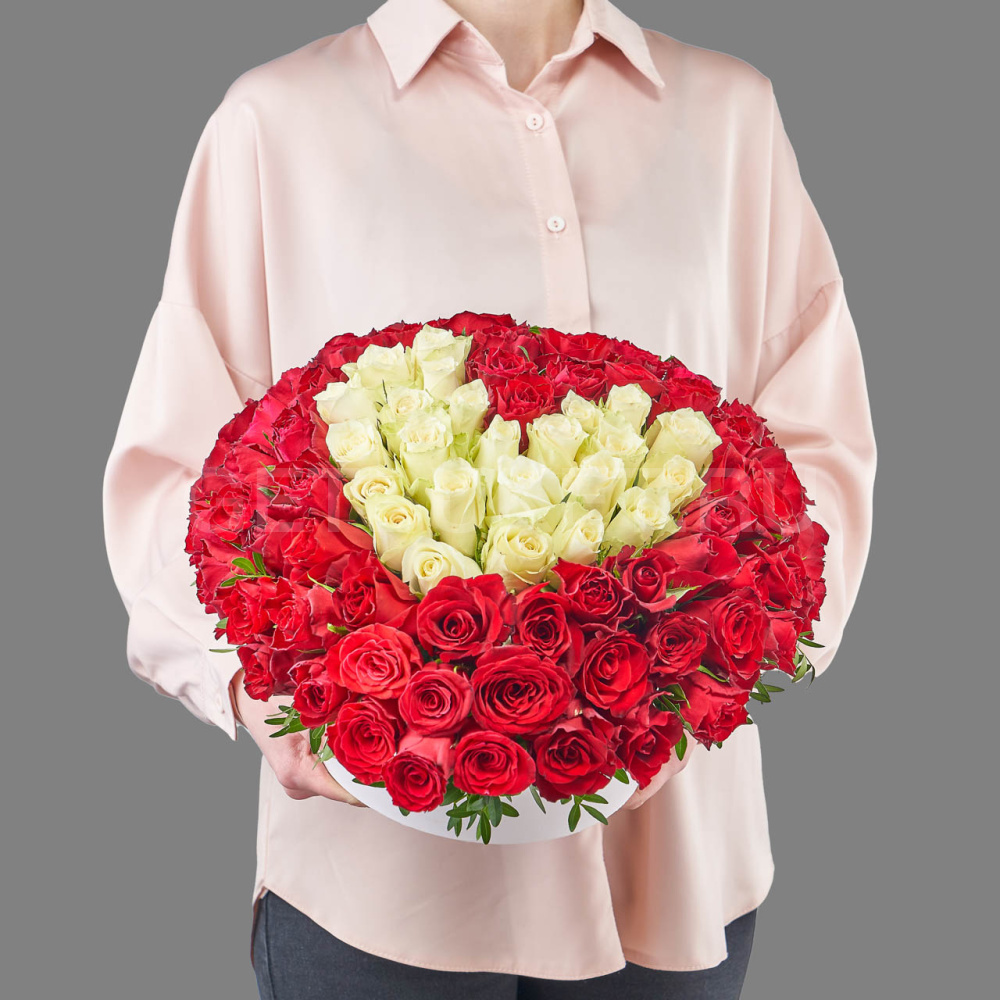 Композиция из красно-белых роз в виде сердца
