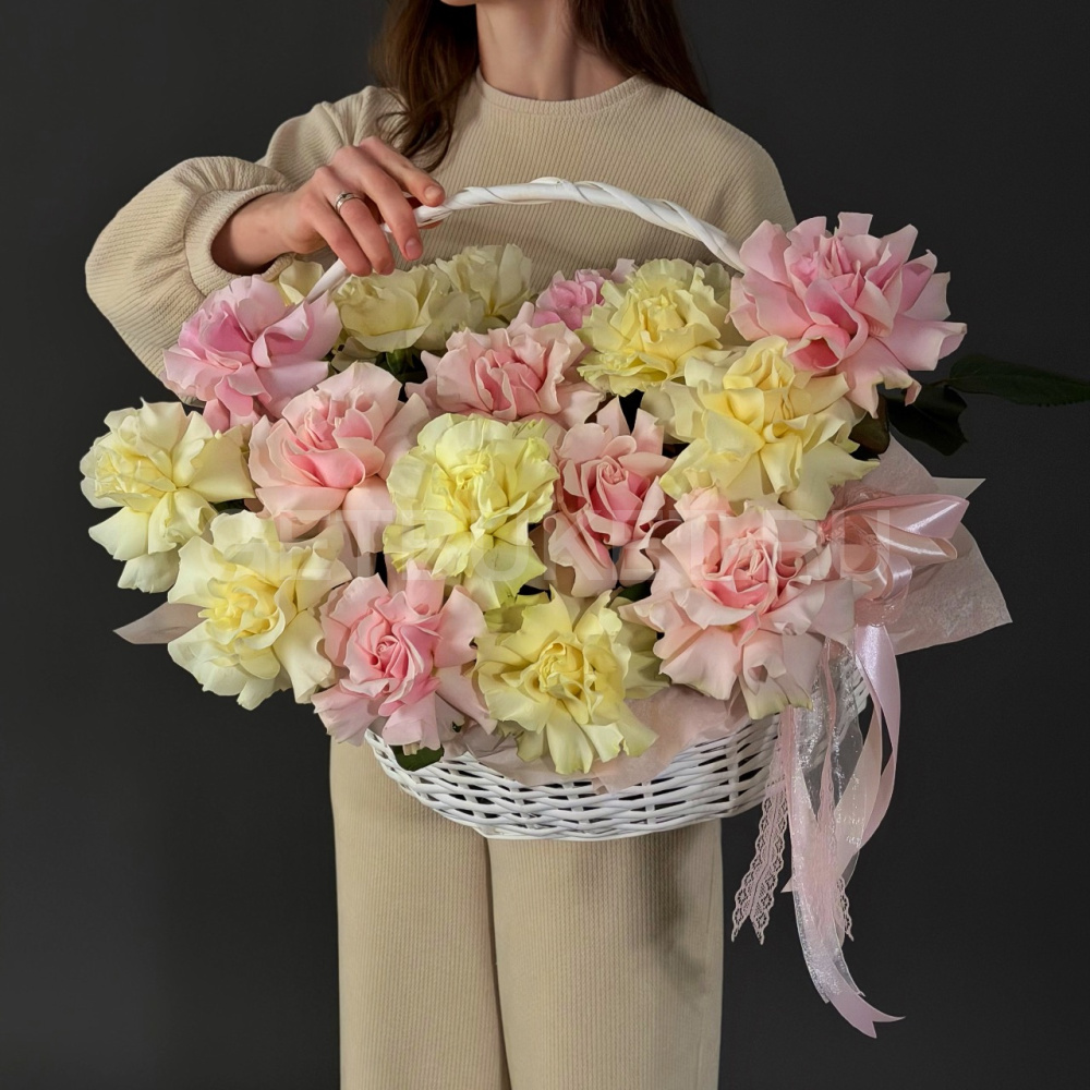 Цветочная корзина из 19 нежных роз
