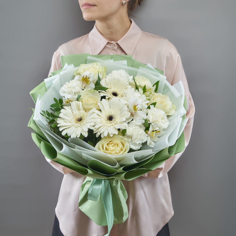 Возможны минимальные отличия букета от фотографии и допустимы отличия по цветовой гамме, так как цветы являются природным материалом и собираются вручную