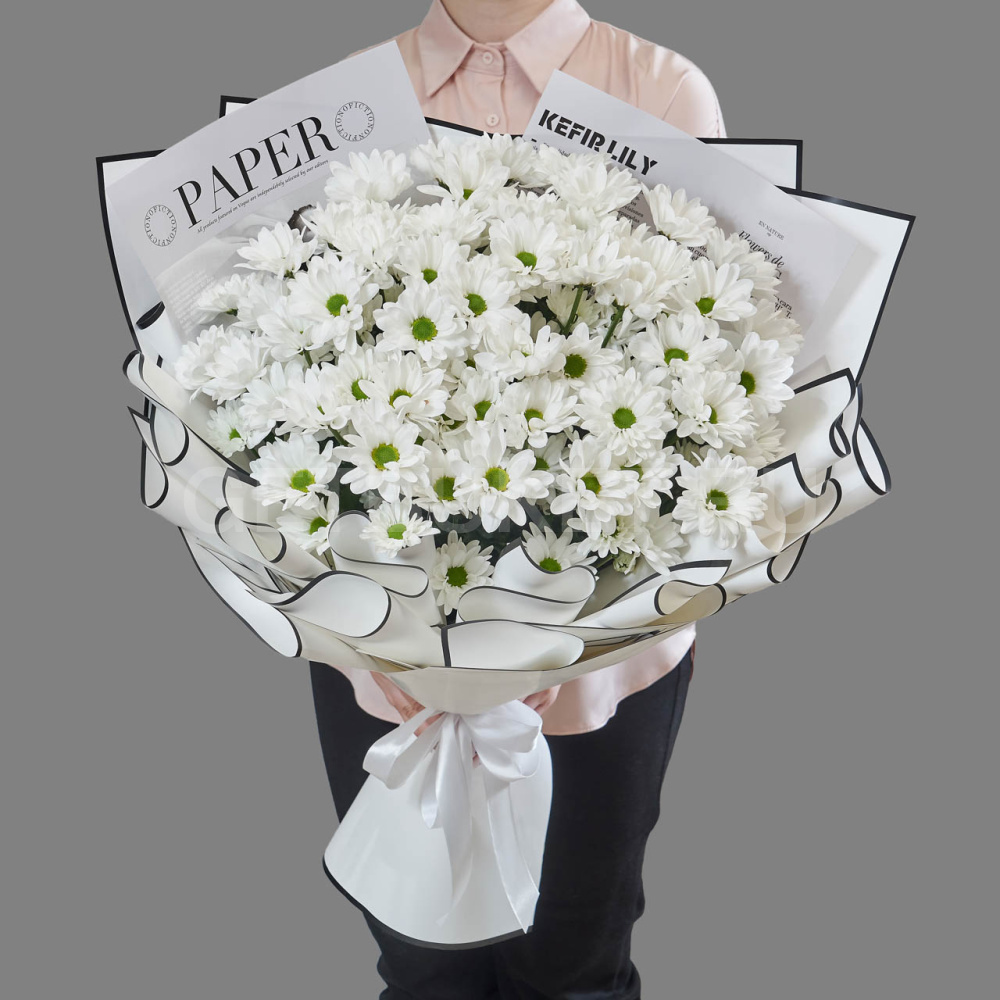 Букет из белых роз, кустовой хризантемы и альстромерии с эвкалиптом10 390 ₽Букет из белых роз, кустовой хризантемы и альстромерии с эвкалиптом 10 390 ₽ -