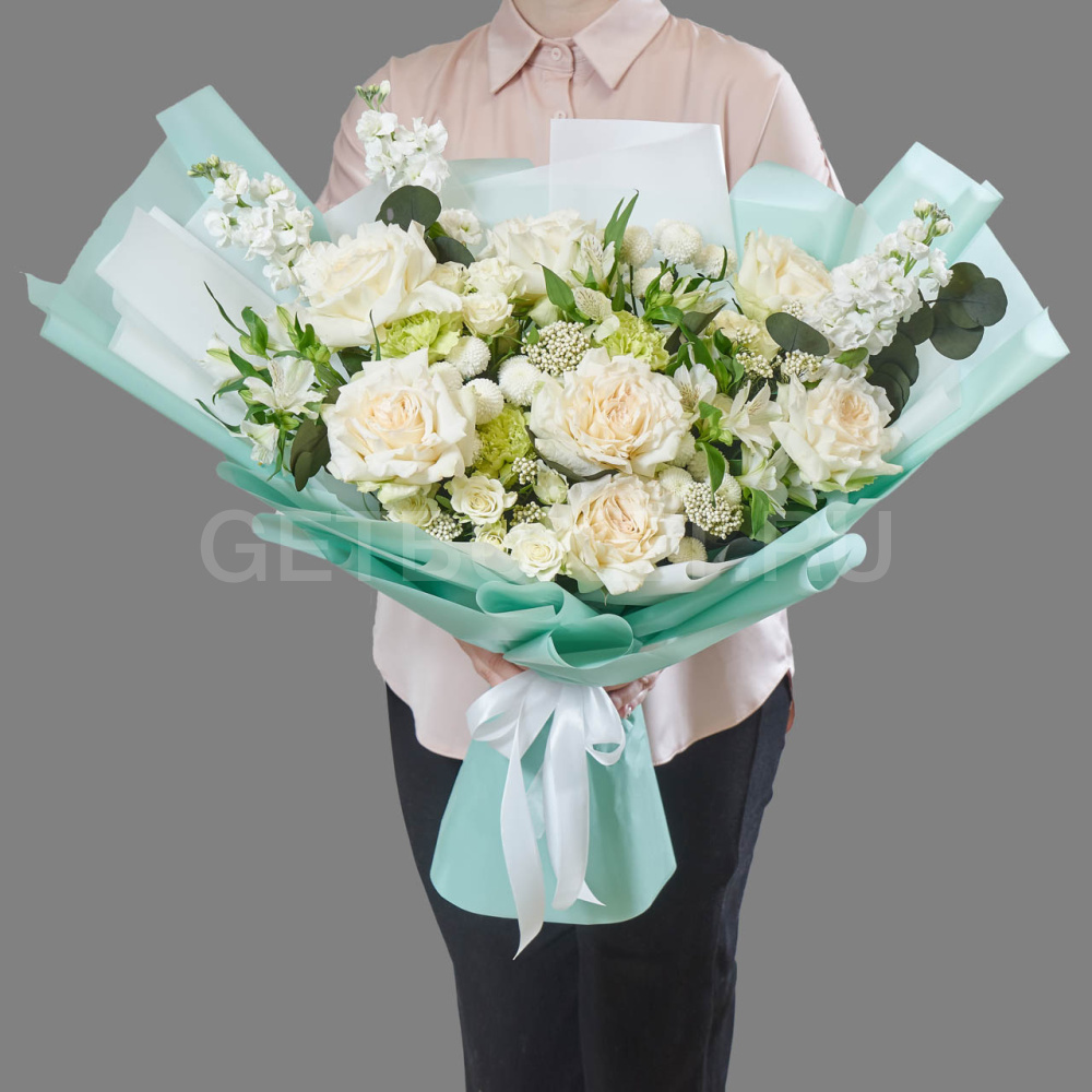 Букет из белых роз, гвоздик и эустомы12 020 ₽Букет из белых роз, гвоздик и эустомы 12 020 ₽ -
