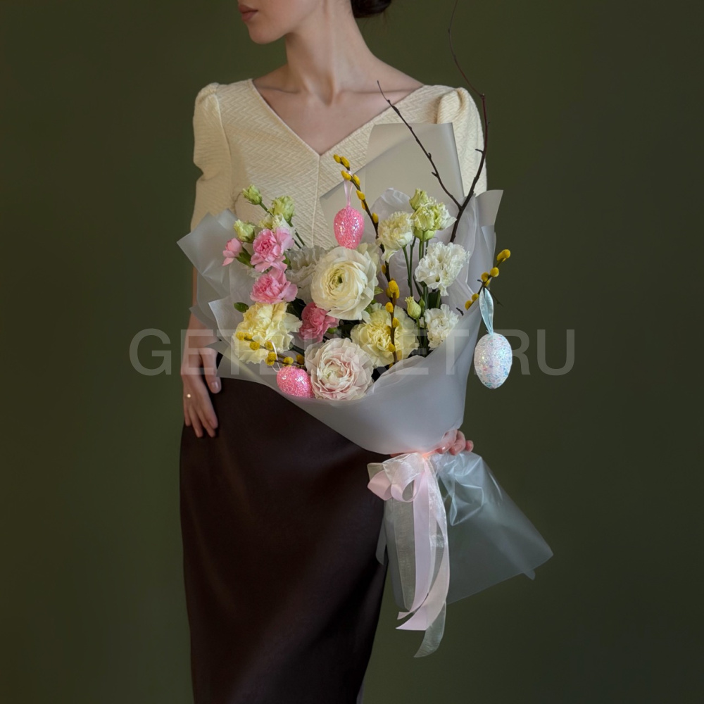 Пасхальный букет из гвоздик, кустовых роз и гербер с вербой5 270 ₽Пасхальный букет из гвоздик, кустовых роз и гербер с вербой 5 270 ₽ -