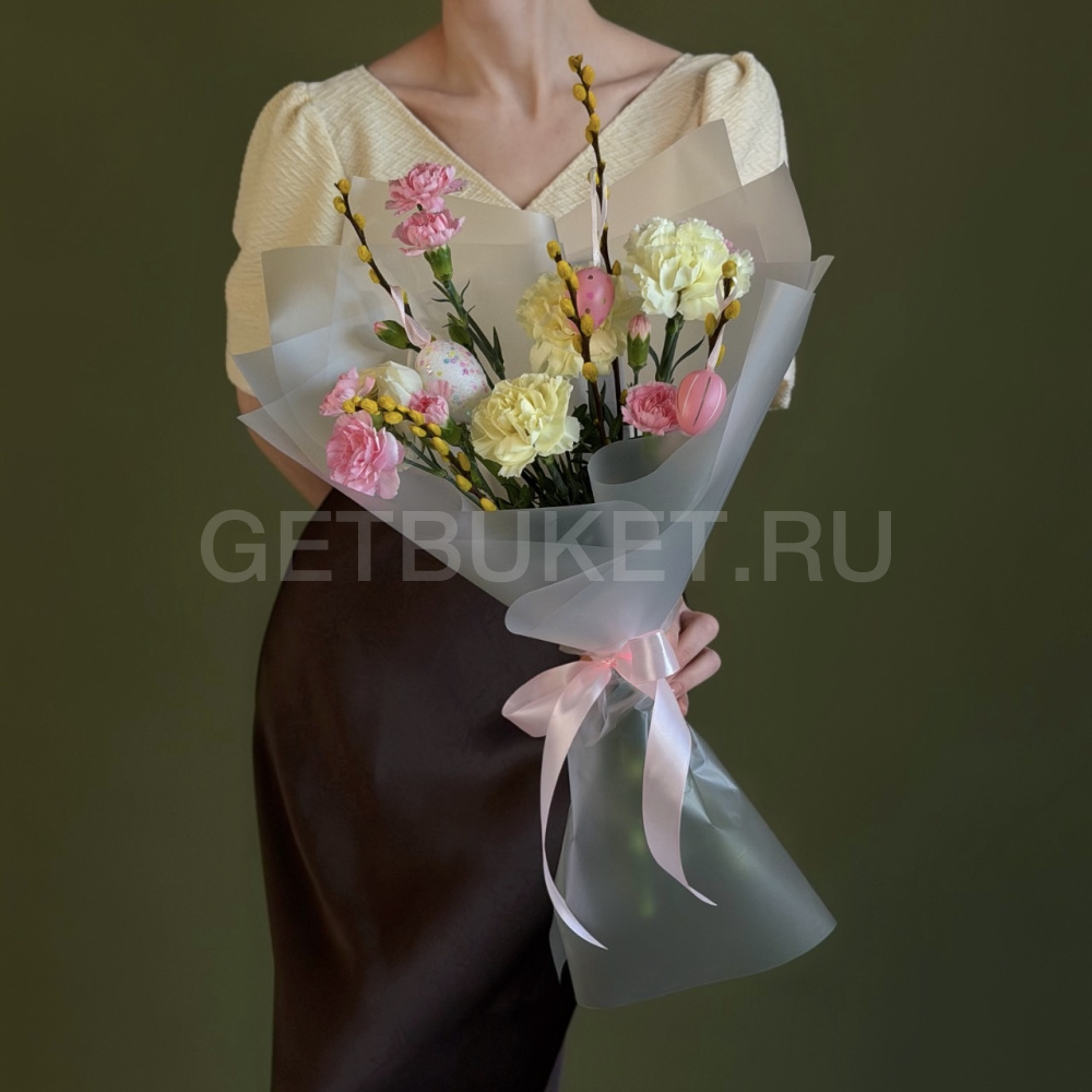 Пасхальный букет из гвоздик, кустовых роз и гербер с вербой5 270 ₽Пасхальный букет из гвоздик, кустовых роз и гербер с вербой 5 270 ₽ -