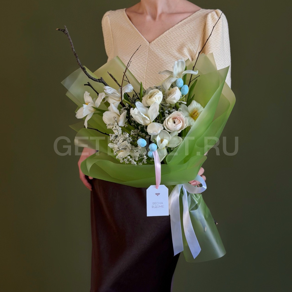 Пасхальный букет из орхидеи, вербы, генисты и лимониума с эустомой8 390 ₽Пасхальный букет из орхидеи, вербы, генисты и лимониума с эустомой 8 390 ₽ -