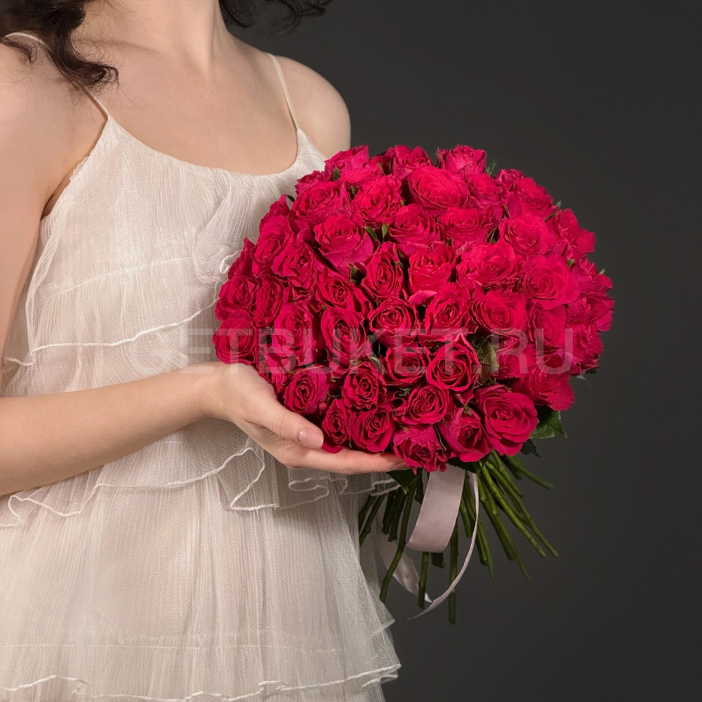 Букет из 51 малиновой кенийской розы
